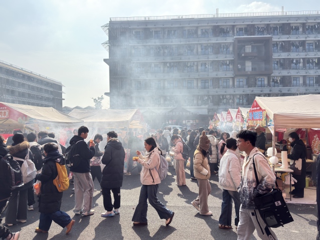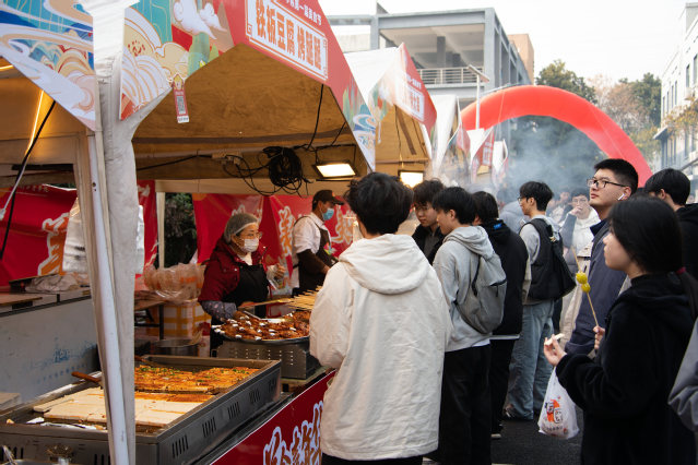为保障活动有序高效,学校提前统筹规划,50余个美食摊位整齐排布成“水院美食长廊”。这里既有南北风味碰撞,让师生足不出校尽享各地美味;亦有异国特色点缀,增添多元体验;更有非遗小吃温情登场,唤醒童年记忆,成为校园文化传承的鲜活载体,引得师生纷纷驻足品鉴、拍照留念。
