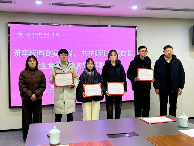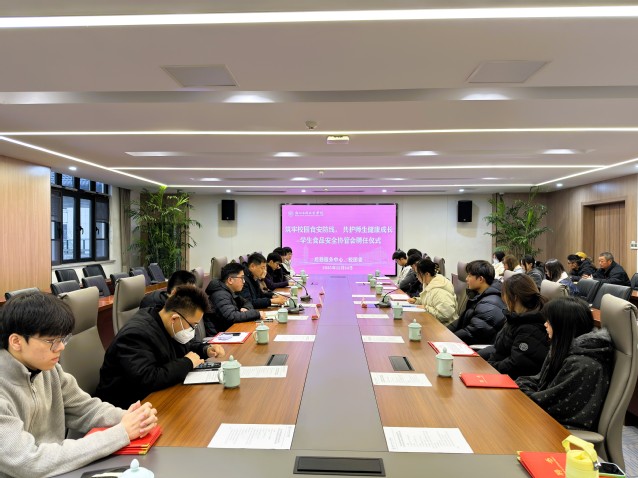 为筑牢校园食品安全防线,健全“师生共建”治理体系,深入践行“上善若水·谦谦学府”水院有礼行动方案,扎实推进学校精神文明建设走深走实,12月24日,我校第一届学生食品安全协管会成立暨聘任仪式在南浔校区思源楼举行。仪式由饮食服务保障部毛云焕主持,学校食品安全常务总监、后勤中心副主任闫成贵出席,校团委、后勤中心相关部门负责人及协管会全体成员参会。