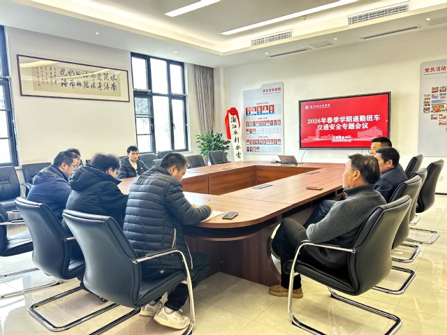 3月5日,商贸服务保障部在南浔校区召开2026年春季学期通勤班车交通安全专题会议,部门负责人王亮、车队主管郭志刚,杭州华驰交通客运旅游有限公司相关负责人及全体通勤班车驾驶员参会。