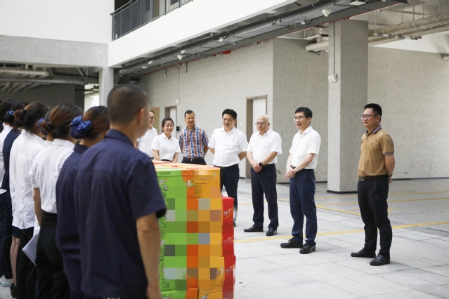 在钱塘校区,陈光亭将一份份“清凉”物资送到园艺工人、门卫保安、宿管阿姨和食堂师傅等的手中,嘱咐他们在高温天气工作时一定要注意防暑和安全,合理安排作息时间。