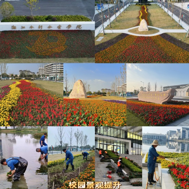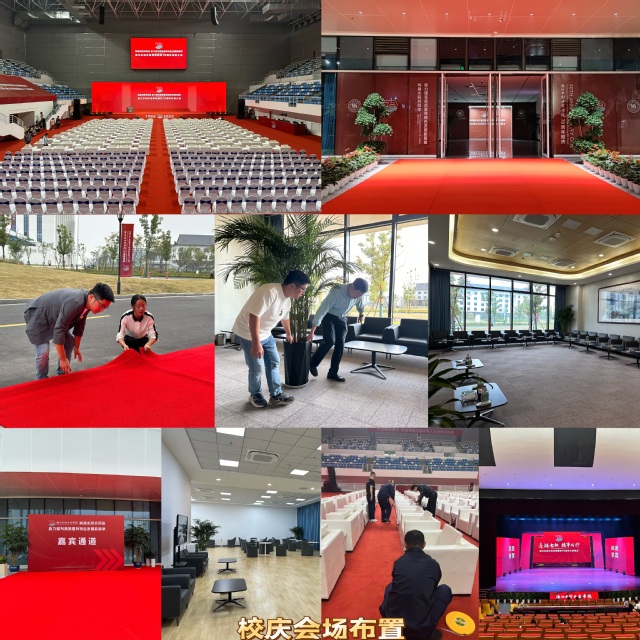 在校庆校园氛围营造中,浔水物业根据总务处的统一部署,督促外包物业做好校园景观提升,校庆活动的主会场、贵宾室、嘉宾室等布置、铺设地毯、搬运桌椅、会场茶水服务及卫生清理等工作,并组织全体人员对体育馆、大剧院、图书馆、蕴物馆、室外等重点位置及参观区域进行两次全面的校园环境综合治理,除此之外对校园内各主要景观区域花卉进行统一设计、统一布置、精心养护,对校友打卡地、校友座谈会、校友休息区等主要场地周边绿地、水域、灌木等进行集中修剪打造草齐、花艳、树美、人文的校园环境,为校友和宾客提供舒心、暖心的感官体验。